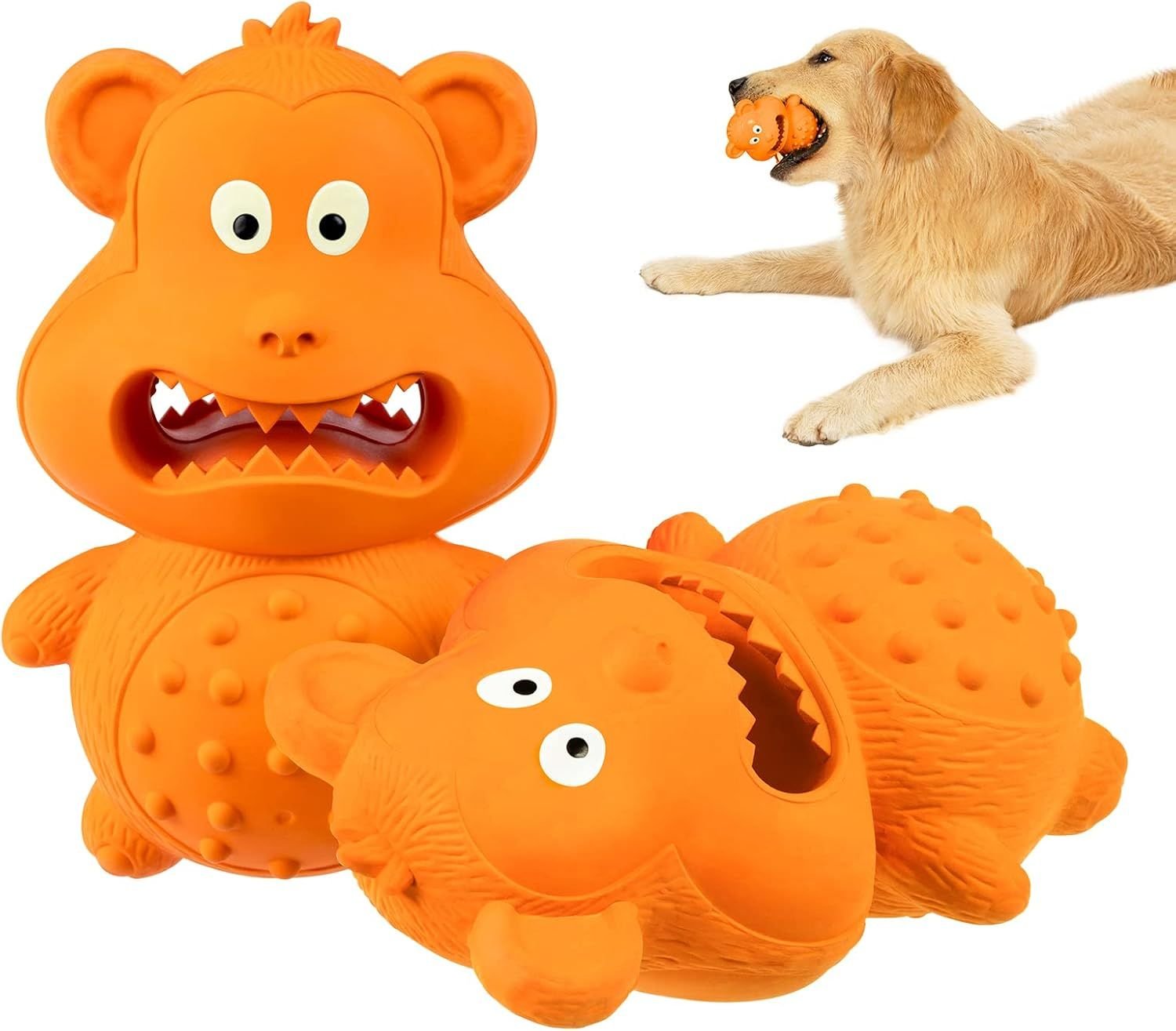 HIGH QUALITY MATERIALS: Natural Rubber material, and added a proper amount of milk smell, can better attract dogs to chew, and can play a refreshing role. Tough and durable, non-toxic, harmless and environmentally friendly. Bite resistance provides long-term support for large dogs and combative dogs.Our dog toys are 30% thicker than standard rubber toys. No dog busy toy is indestructible, but this pack is the closest.MOST AGGRESSIVE CHEWERS APPROVED: This tough and indestructible puppy chew toys for teething has been tested and approved by German Shepherds, American Foxhound, Mastiffs, Alaskan and many other dogs.Not suitable for aggressive dogs with short tempers.LOVE YOUR DOG: The dog toys for aggressive chewers help to satisfy the dog's natural chewing, clean the dog's teeth, dirt and mouth, reduce anxiety and avoid the urge to chew destructively. Teach the dog healthy chewing habits to promote a firm jaw, which is good for training, teething, weight control, hurry up and make the dog happy.MOST PROFESSIONAL DOG ORAL CARE: When dog chew the puppy teething toys. Effectively grinding teeth and control tartar and plaque growth, promote your dog's strong jaws. squeaky dog toys creates fun sounds during chewing, provide long-lasting engagement making chewing more exciting for dogs.CHEWERS APPROVED: This tough and indestructible puppy chew toys for teething has been tested and approved by German Shepherds, American Foxhound, Mastiffs, Alaskan and many other dogs.Not suitable for aggressive dogs with short tempers.100% HAPPY GUARANTEE: Our aim is to design durable dog toys and provide satisfactory service for you. The behavior of dogs is unpredictable, if for any reason you are not satisfied with our dog toys for aggressive chewers, please contact with us, you will get a free replacement or a full refund.We recommend supervised play dog busy toy.