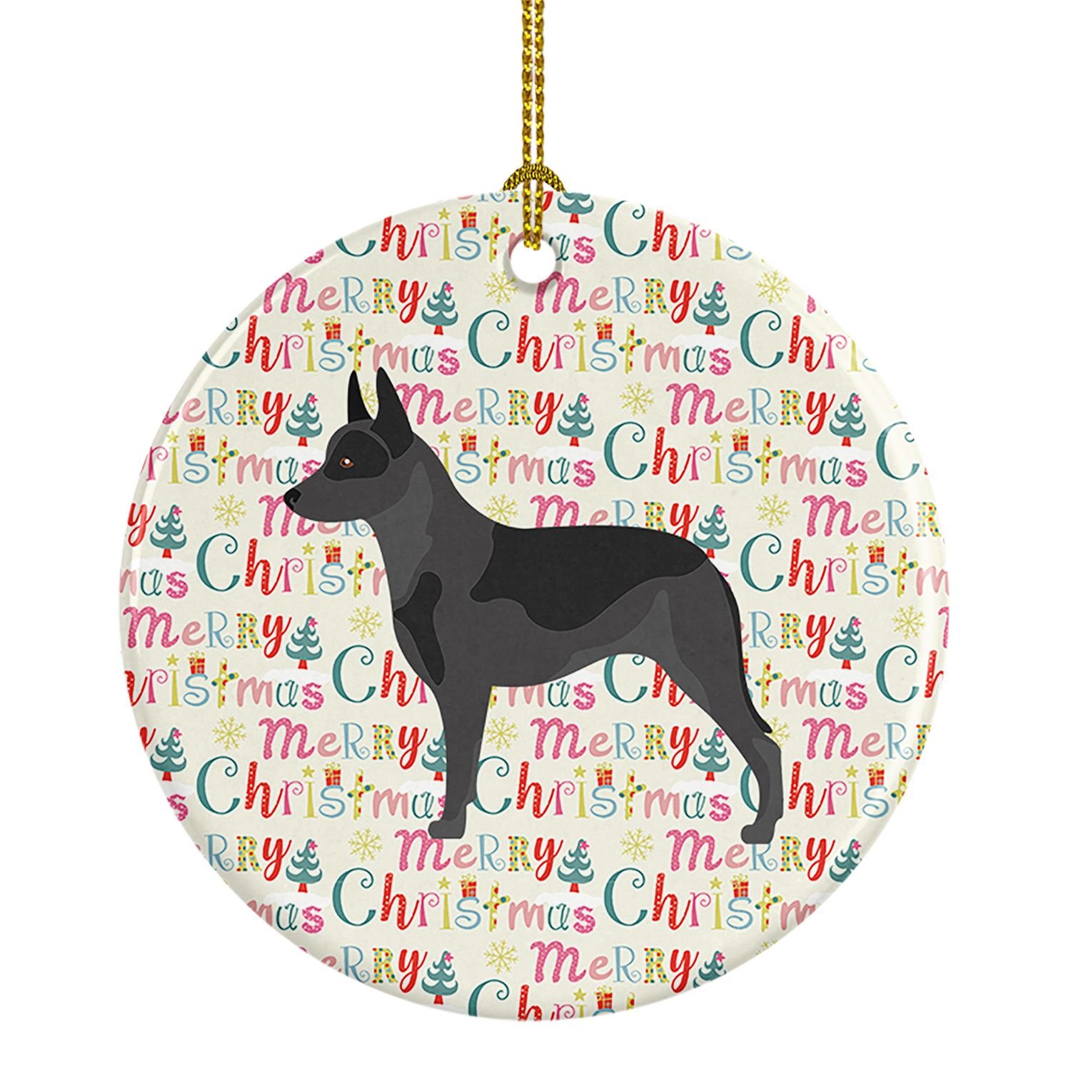 Ceramic Ornament featuring breed specific Australian Cattle Dog artwork. Celebrate Christmas with this Christmas Ornament. This Ceramic Ornament is from Caroline's Treasures collection Merry Christmas. Add a touch of personalized charm to your Christmas tree this holiday season with our Ceramic Ornament. Measuring 2.8125 inches in diameter, this round porcelain ornament beautifully reflects your festive lights, enhancing your holiday decor. The gloss surface sets off the vibrant, full-color artwork contributed by one of our talented artists, bringing a pop of color and joy to your tree. This Ceramic Ornament doesn't stop at being merely decorative. The white back is designed for personalization. Write a heartfelt message, mark a special year, or inscribe a date with a paint pen or a permanent marker to create a treasured memento. Please ensure you allow any personalization to dry thoroughly before handling to maintain the pristine finish. Included with the ornament is a delicate gold cord for easy hanging. Made in the USA, this Ceramic Ornament makes an exceptional gift for a pet sitter, teacher, family member, or anyone you wish to share a little Christmas magic with. With its blend of style, charm, and personal touch, it's a meaningful addition to any Christmas tree. This Ornament is from Caroline's Treasures Dogs category of products.