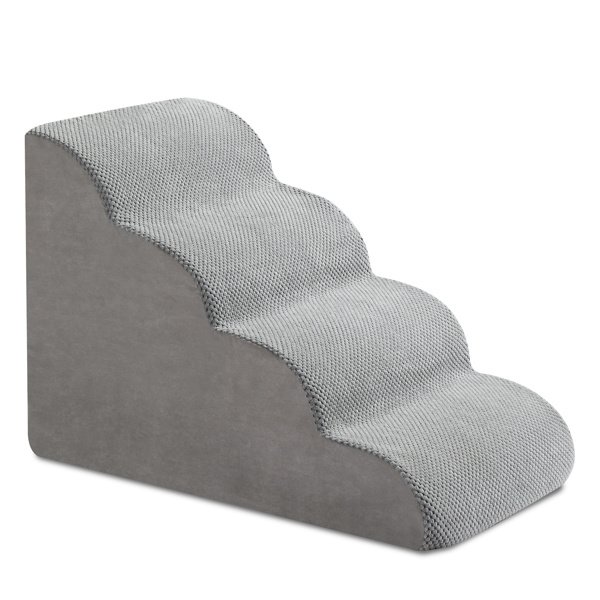 Introductions: This 4 step pet stairs is perfect for smaller dogs or older dogs and cats suffering from arthritis, painful joints, overweight bodies or hip dyspepsia. Give your pet back their independence and allow them to easily access couches, ledges & hard to reach spaces that they struggle to climb. Perfect for small breeds who have trouble or are timid to access couches and chairs. What is more, it features a machine washable soft velvet suede cover. Stop forcing your pet to miss out on the fun and let them access all their favorite places to snuggle and slum