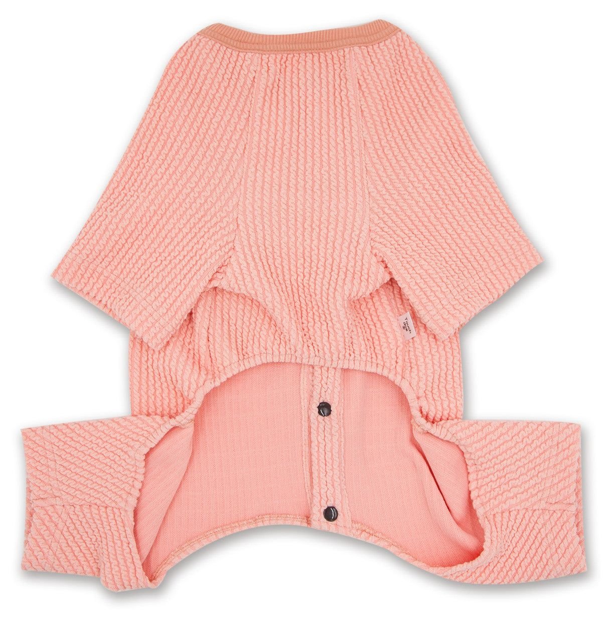 The Touchdog Ciesta-Luxe full bodied thermal jumpsuit is composed of soft cotton and polyester blended shell. Comfortably covers all 4 sleeves. Features accented buttoned and embroidered detailed trims along the back and sleeve areas. Features ribbed stitching surrounding the neck area with a leash slit along the back side. Machine washable. Available in Multiple Colors and Sizes.